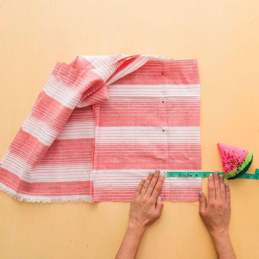 Fold your fabric, with the fold on top, and then cut to the measurements that will fit your body.