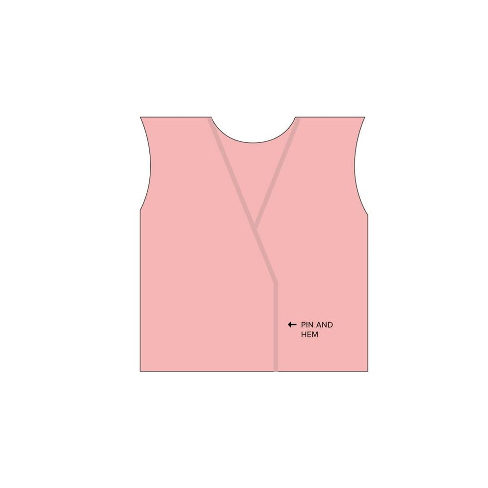 Pin and hem the front neckline. You can sew this all in one straight line — starting from the left side bottom, curving around the back of the neck, and ending at the right side bottom.