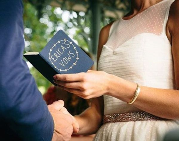 8. Write them down in a keepsake. A crinkled up notecard will do in a pinch, but why not copy your finished vows down in a little notebook or a cute letterpress card that you can keep for always? (image via Brooklyn Bride)