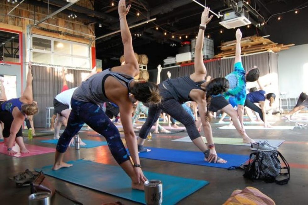 4. Themed Yoga: A couple of Texas teachers broke the internet with a Harry Potter-themed yoga class they hosted around Halloween last year at Circle Brewing Co. in Austin. Muggles went crazy for the wands, invisibility cloaks, and poses like Slytherin Cobra and Downward Fluffy. Studios around the country have followed suit and expanded with other whimsical interpretations based on HP and other stories, like Fantastic Beasts and Where to Find Them. (Photo via Circle Brewing Co.)