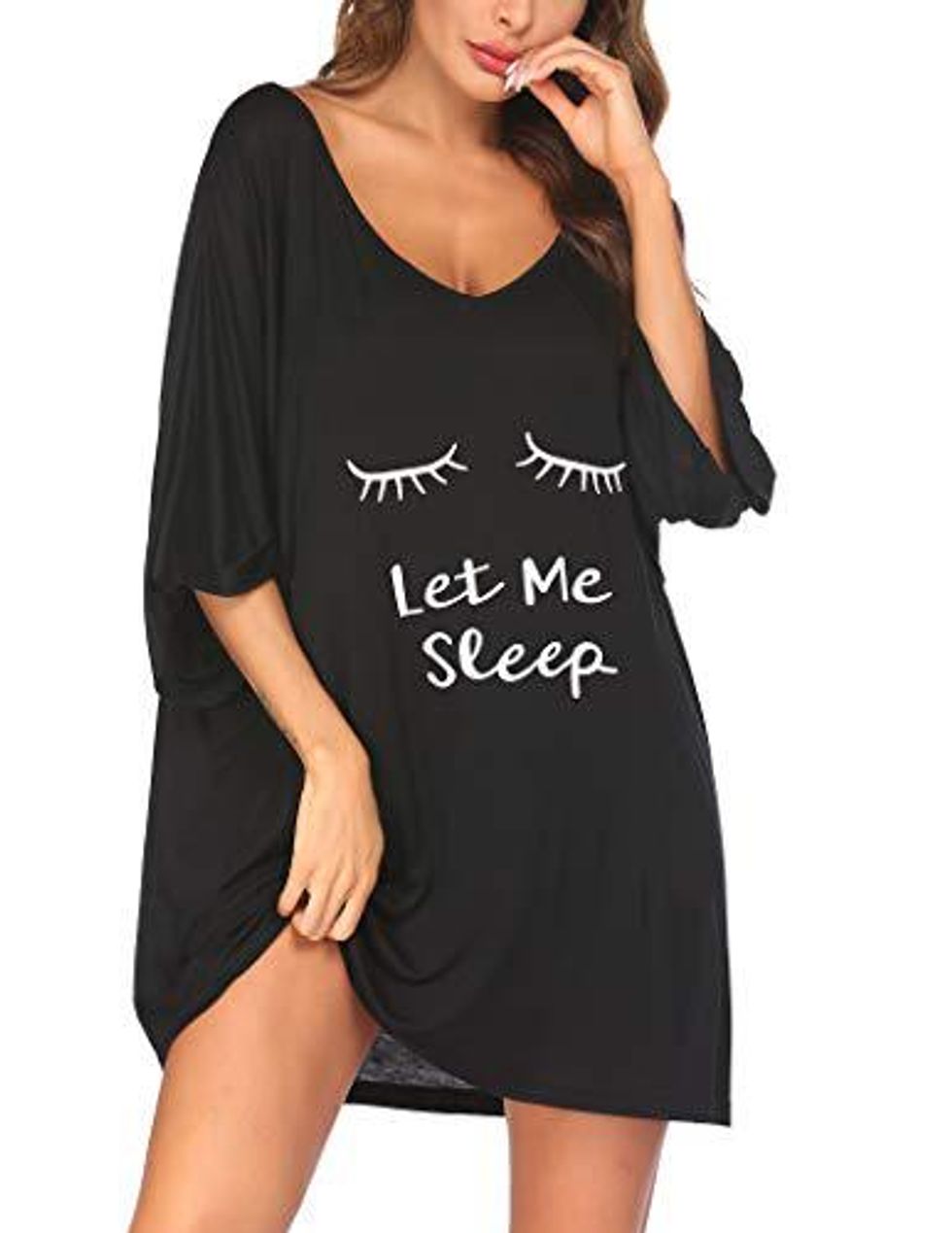 We could all use more sleep, so why not say it with your PJs? Not only is it cute and sexy, but this deep V-neck nightgown gets your point across clearly with the words, "Let Me Sleep." The loose and flirty look will make you want to wear it everywhere you go.