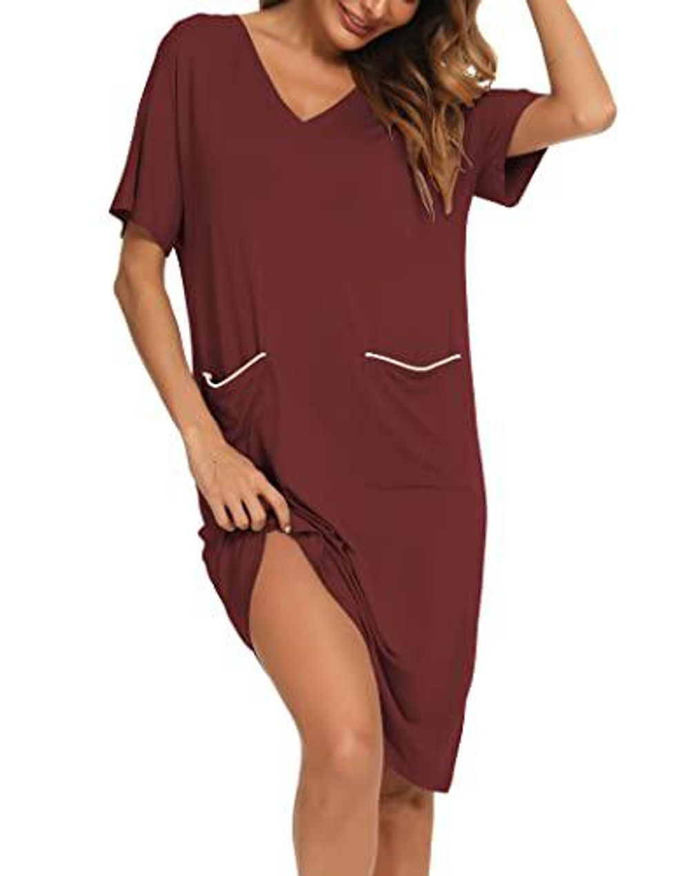 Anything with pockets is a win in my book, and this incredibly soft short sleeve nightgown is definitely a win on all levels. Made with the softest and most lightweight fabric, you'll never want to take it off. Plus, the V-neck makes it feminine and flattering too!