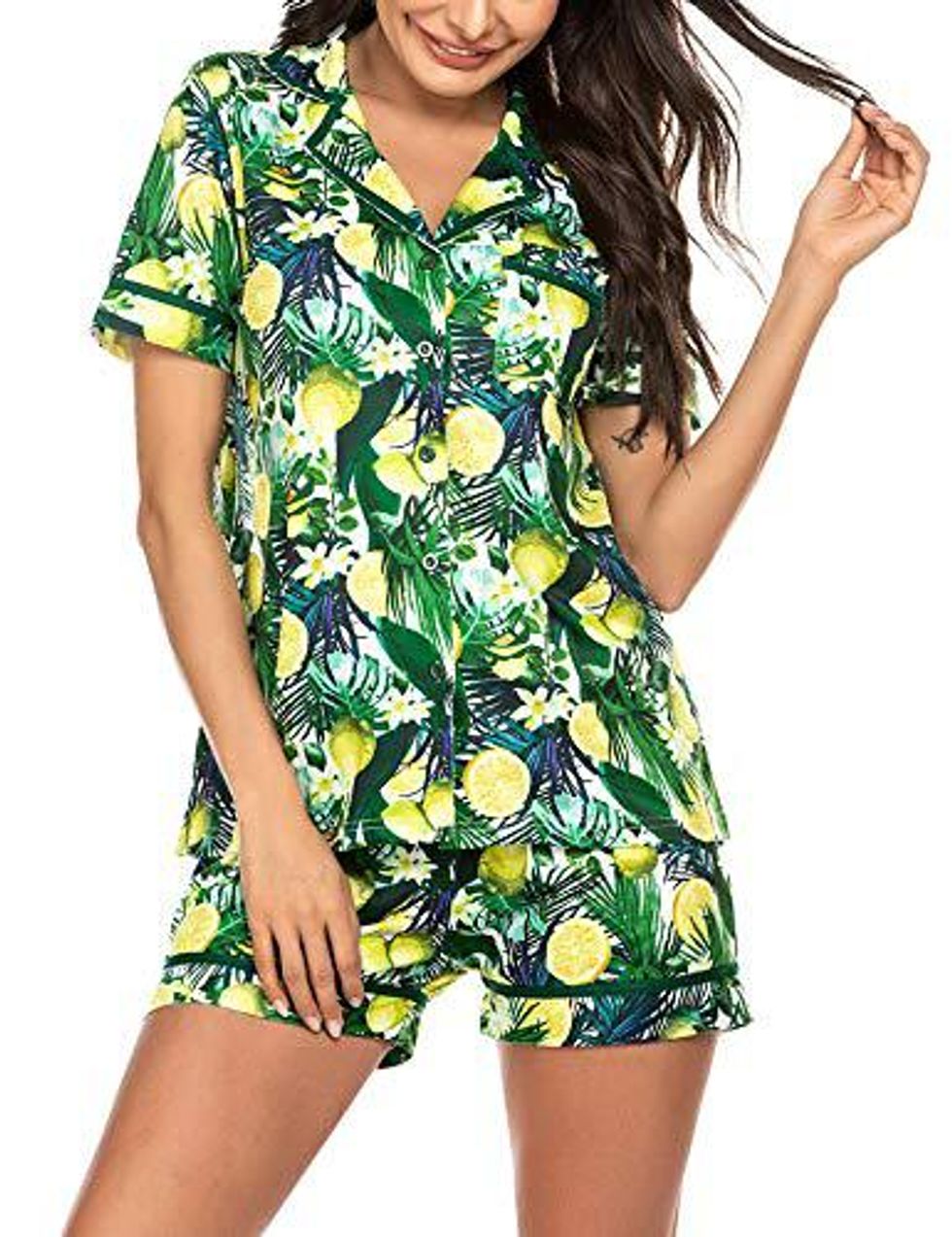 Sometimes a bright and bold print is just what you need to make your days brighter. This tropical short sleeve set with palm leaves and lemons is too cute to resist. Make your life a little happier with the cutest pajamas you'll ever meet!