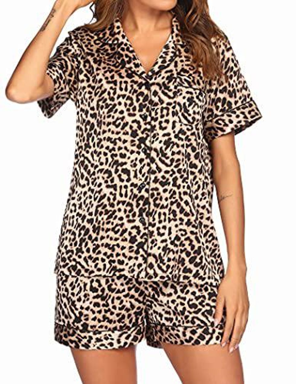 Get in touch with your wild side with this short sleeve set! Designed in the classic sleepwear style, these adorable and comfy pajamas will give you the most stylish sleep of your life.