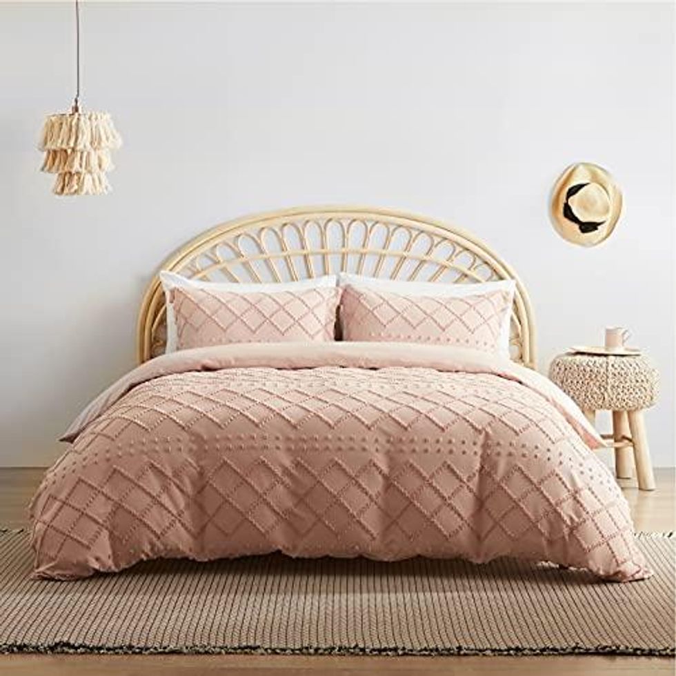 This Bedsure Duvet Cover Set goes with every kind of decor and comes in sizes and shades to suit your tastes. The set is a three-piece, including the duvet cover and two pillowcases.