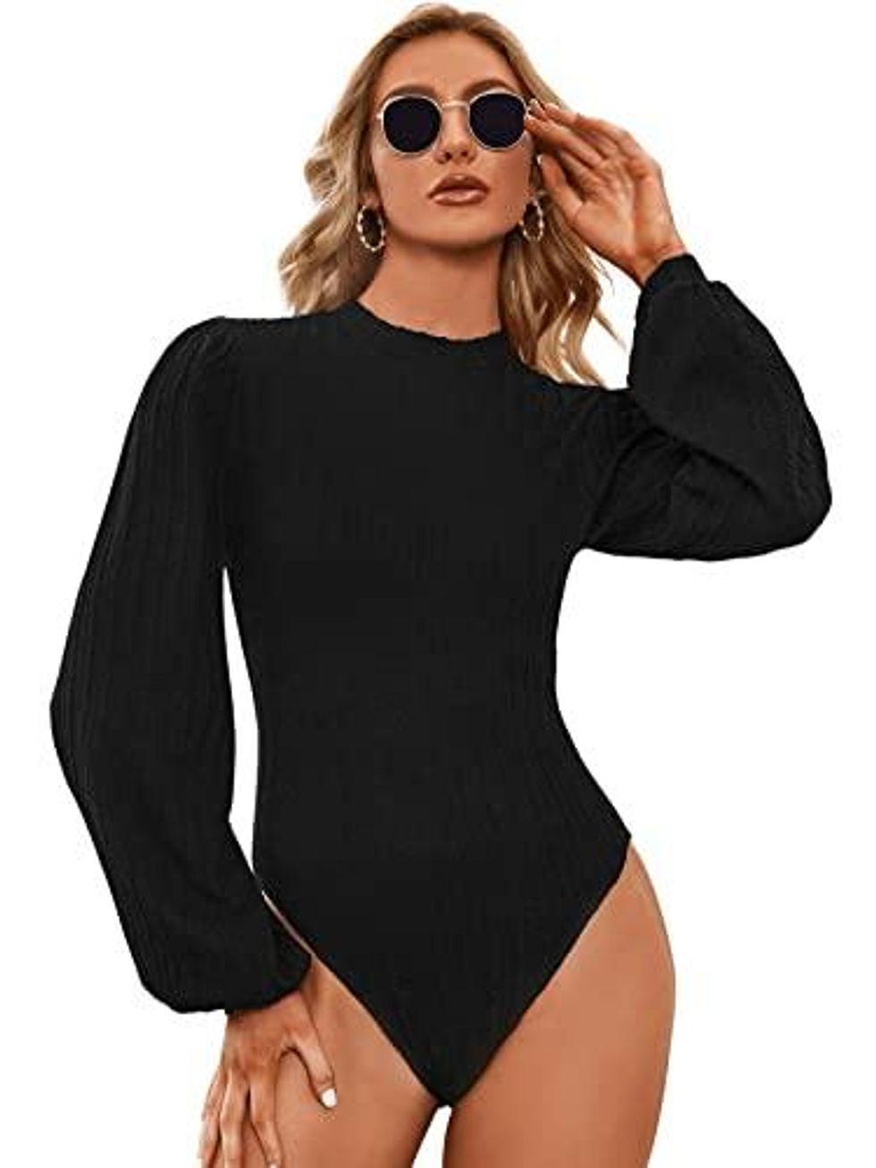 We are absolutely loving this turtleneck bodysuit. To add something a little extra it comes with lantern sleeves that create a gorgeous silhouette. While black is a classic, it does come in 13 colors.