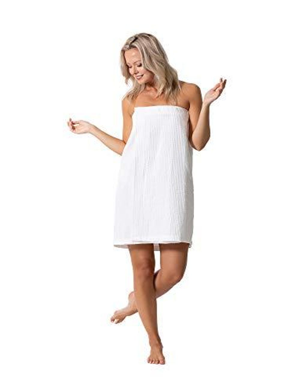 This towel wrap is better than a bathrobe and is perfect for getting ready, self-tanning, or after a shower at the gym. It’s easy to adjust for any size and actually stays up on its own for practical and safe coverage.