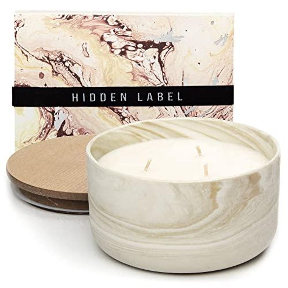 This year we're cultivating our enviornment at home and these hidden label candles are the perfect decorative addition to any style setup. The marbled container and wooden candle top make it look like a high-quality piece of sculptural decor even when the candle isn't lit.
