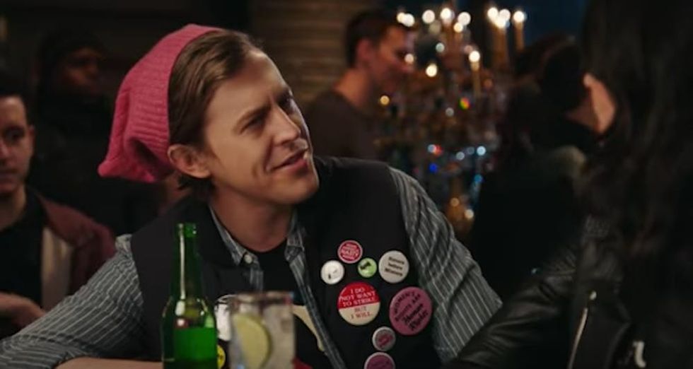 From there it’s a rotating door of guys who perform all the necessary parts of modern feminism — including attending the Women’s March, working for Hillary Clinton’s campaign, name-dropping California Senator Kamala Harris, and even wearing a Pussyhat — all in the name of scoring some points with the ladies. Spoiler alert: It doesn’t work out for ’em. And they’re not too happy about it.