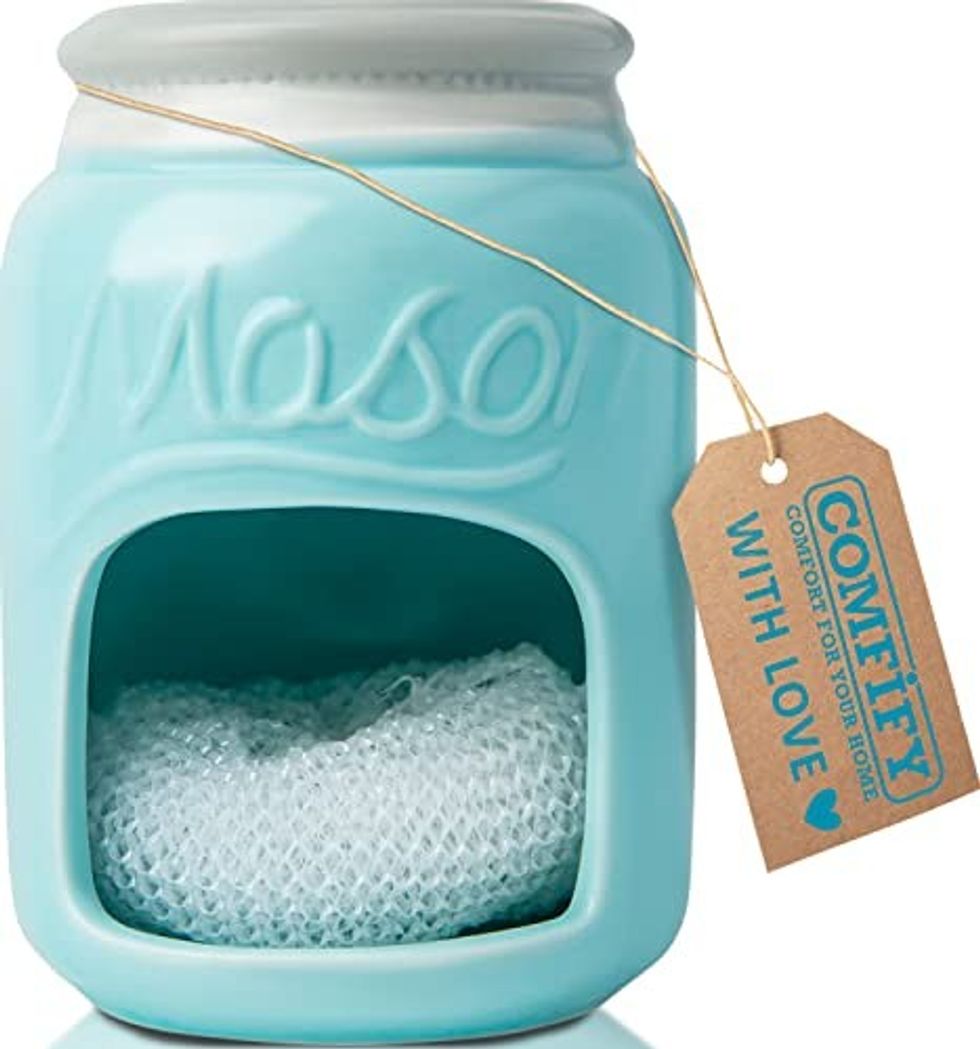 Letting your sponge sit in the bottom of your sink can lead to mildew growth, so why not keep it high and dry inside of this holder? It's made from sleek ceramic — not plastic — and you even have the choice of six colors: aqua, yellow, coral, green, grey, or purple.