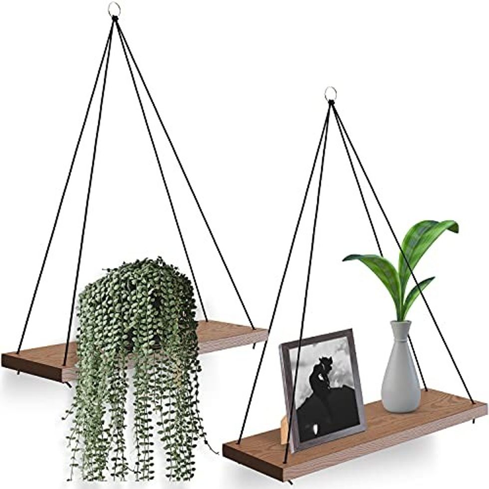 Got a blank wall you want to decorate? Consider hanging up these shelves. They have a bohemian vibe that easily meshes with any style, and the platforms are even made from real pine — not particle board.