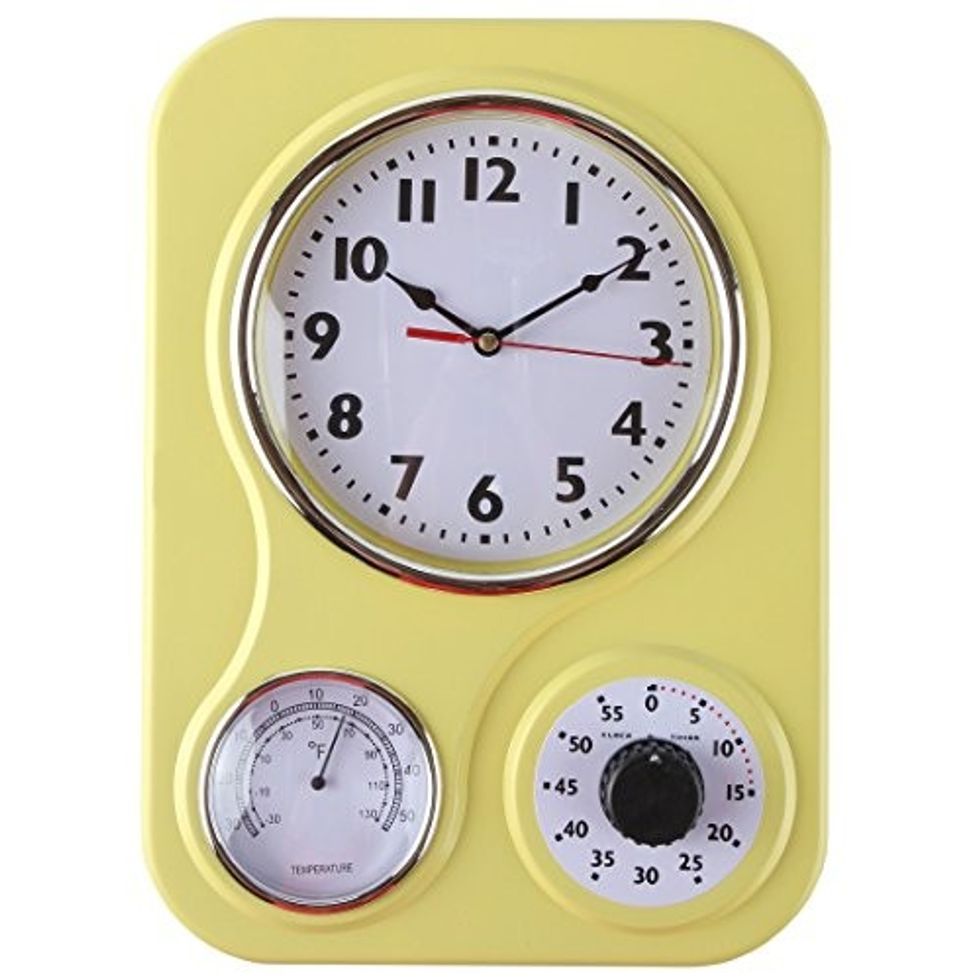 As far as retro finds go, this wall clock might just be the most useful gadget on this list. Not only does it tell time, but a quick glance will also tell you the temperature — and there's even a timer you can use when cooking. Choose from four colors: yellow, turquoise, red, or orange.