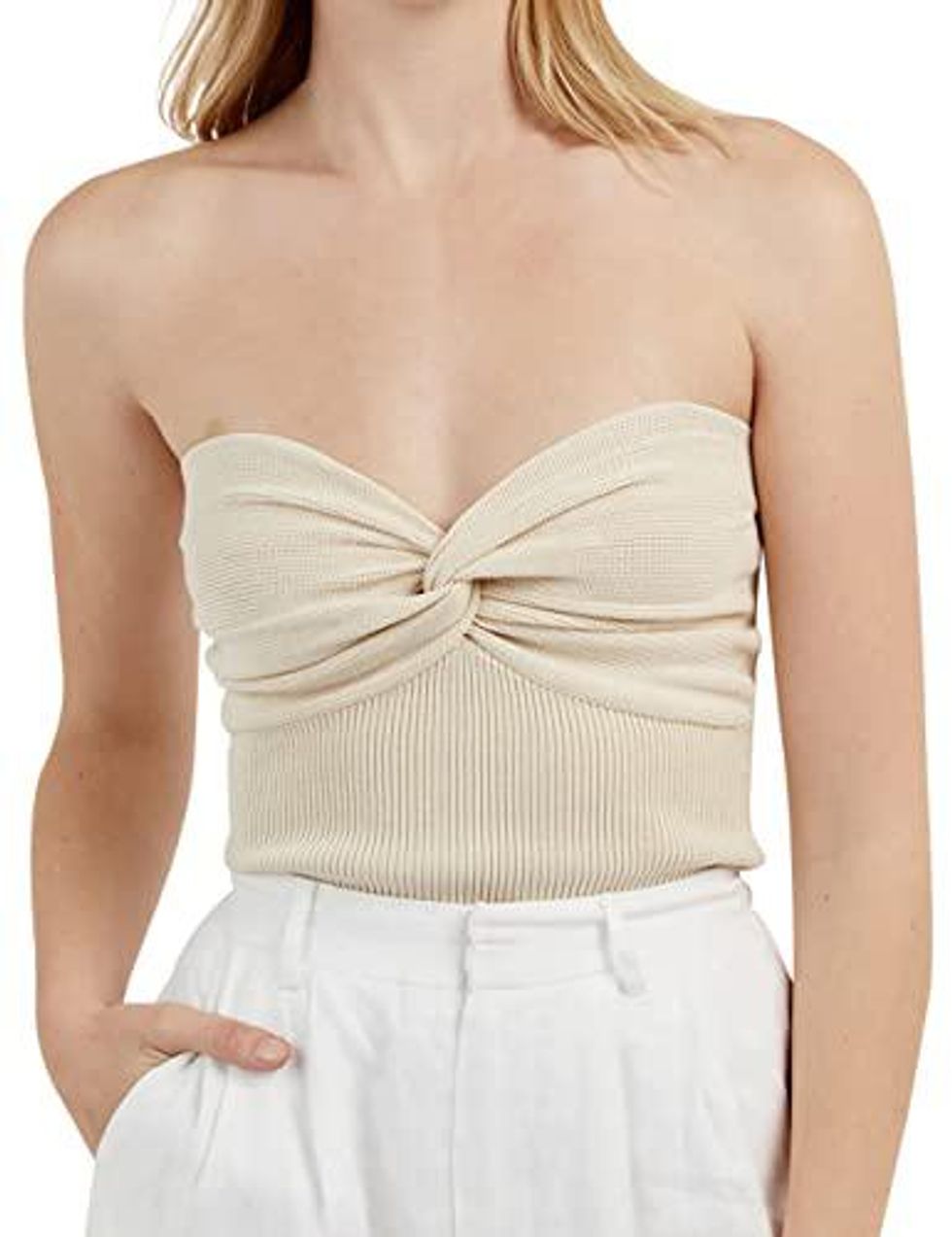 Easy to style and great to wear on a super sunny day, this twist knot strapless top is casual but still feminine and flattering enough to dress up or down for any occasion.