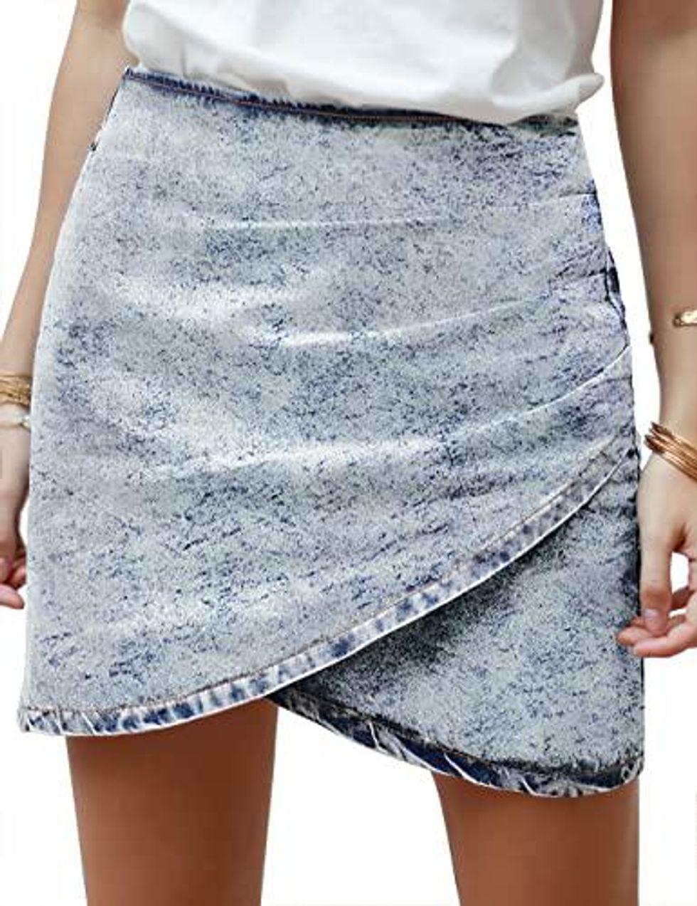 An alternative to the classic mini, this denim skirt has a wrap style for comfort and the acid wash adds some funky flair to your outfits. Everyone will be asking you where you scored this awesome find.