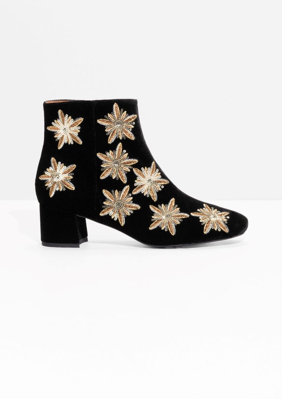 & Other Stories Sequin Velvet Boots ($195): Who says that bossy is a bad thing? You’re a feisty and fearless Aries who makes up your own rules as you go. When it comes to hitting the pavement (err, make that the dance floor) in style, you can count on these celestial-inspired booties taking center stage.