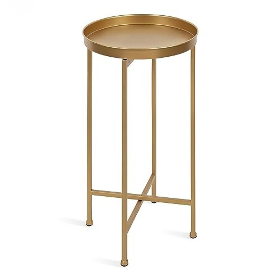 Mixed metallics and materials are a great way to create a dynamic space visually. This foldable side table adds a bright brass touch and is super handy to have when hosting a party so guests have a space to put their drink even if it's in the tiniest corner.