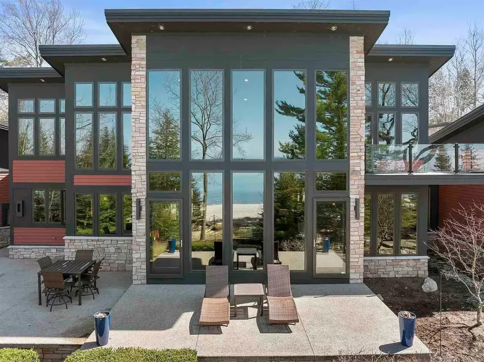 The windows alone are enough to make this house the dreamiest escape, let alone the private and super exclusive access to Lake Michigan. This home may only have three bedrooms and four bathrooms, but each room feels intentional, spacious, and utterly luxurious. I'd definitely dip my toes in that water!