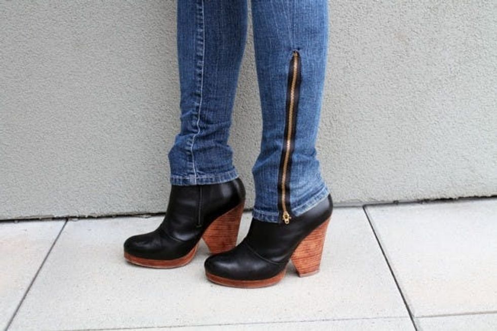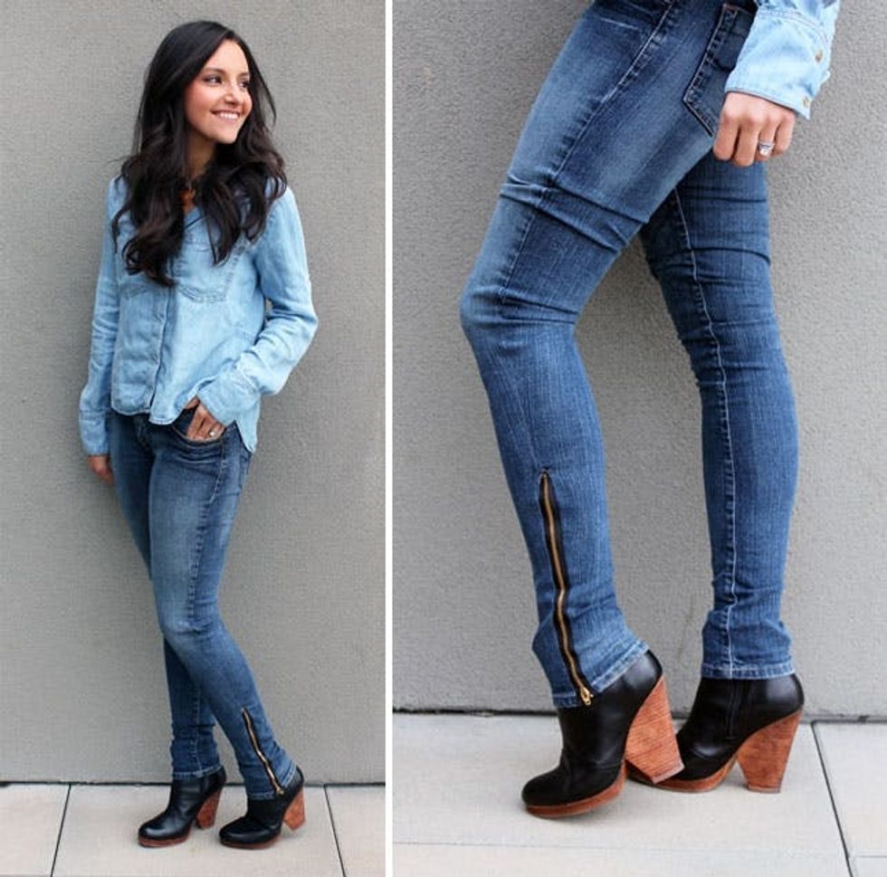Can’t seem to shake those old bootcut jeans in your closet? But never wear them? With a couple zippers, a few trials on the sewing machine and a little hackery, it’s surprisingly simple to turn them into skinny jeans!