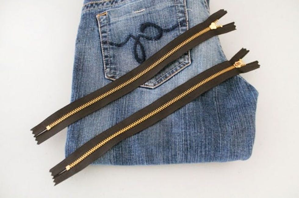 This is definitely on the more advanced side in terms of projects, as you’ll need to know the basics of sewing on a sewing machine and be willing to learn how to use a zipper foot. Before you get started, we definitely recommend watching this video on how to sew zippers. You could potentially do this by hand, but it would take a lot of patience and some seriously strong stitches. Here’s a little before and after action.