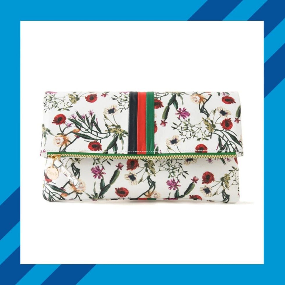 Brit + Co Picks (from top to bottom): Zara Square Dangle Earrings ($20), Clare V. Foldover Clutch ($235), Topshop Dolly Sequin Fringe Denim Jacket ($280), and Rebecca Minkoff Susanna Sneakers ($175).