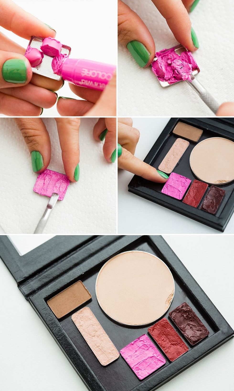 everyday essentials — from face powder to lipstick and concealer — in your small Z Palette. Wait… it can hold lipstick and concealer, too? Oh yeah! Here’s how to hack your fave cream-based products to fit in this compact Caboodle: